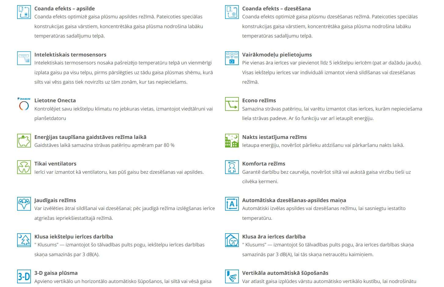 - Sezonas efektivitātes vērtības līdz pat A+++ gan dzesēšanai, gan apsildei, pateicoties viedai tehnoloģijai