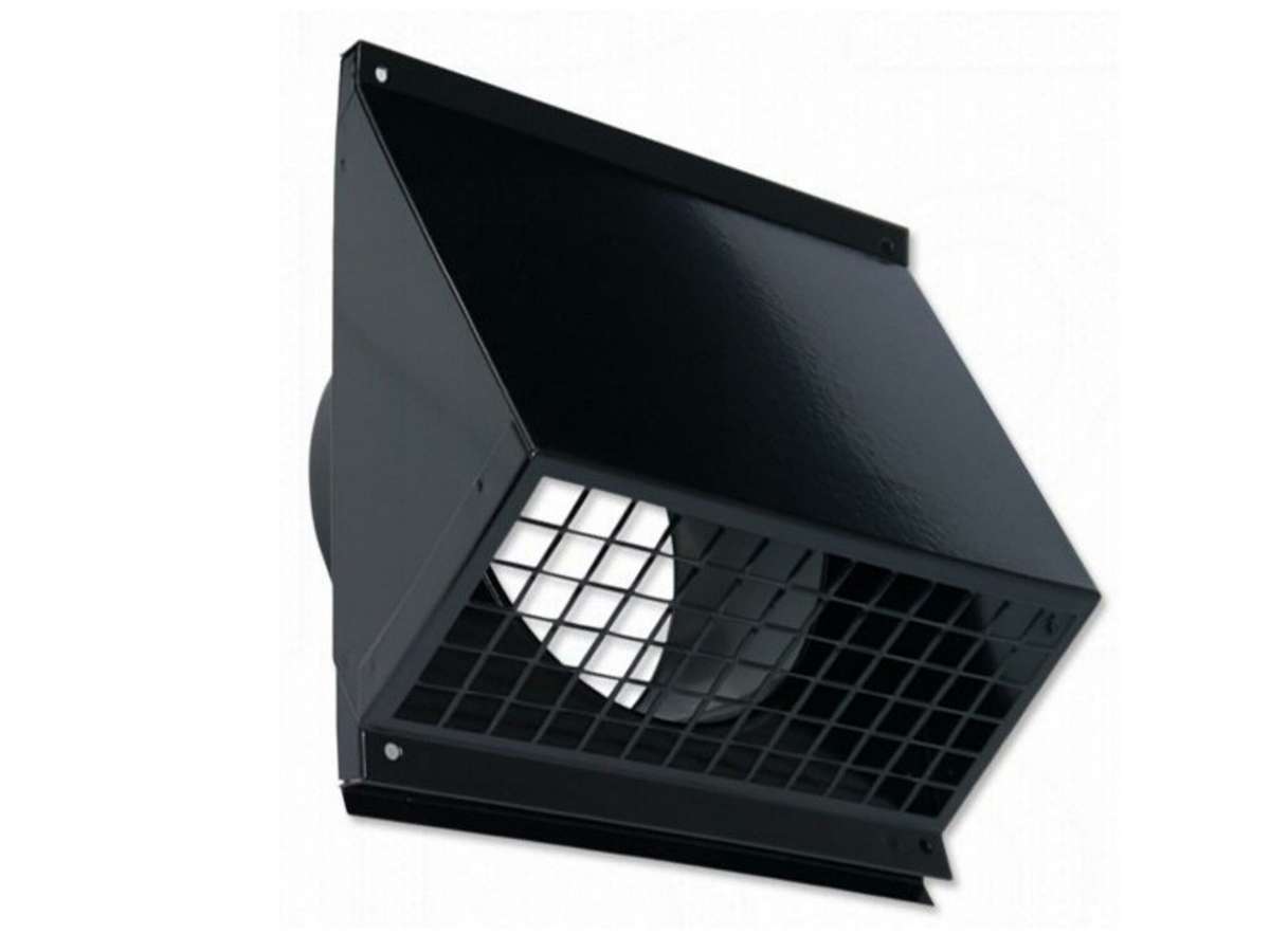 Īss sienas izvads, gaisa iesūkšanai vai izpūšanai caur fasādi Ø 125, 160, 180 mm, melns vai balts.