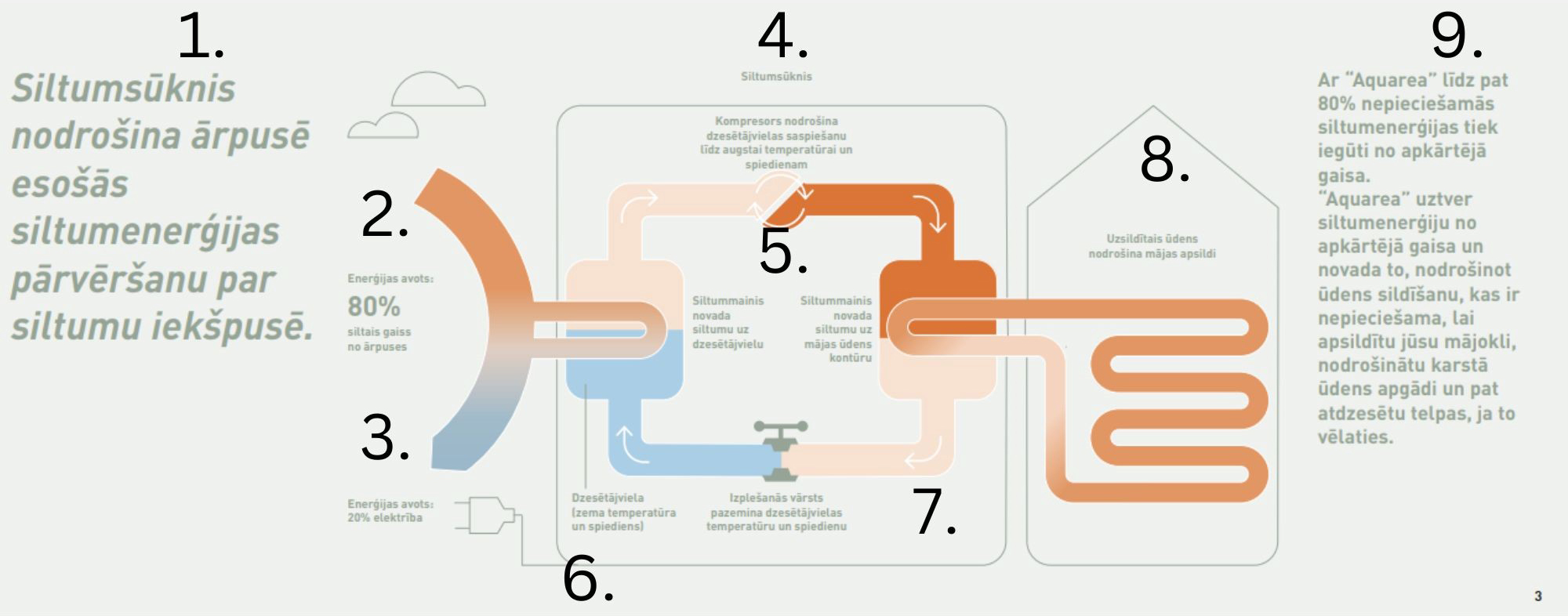 1-3. Siltumsūknis darbojoties, ārpusē esošo siltumenerģiju ģenerē un pārveido par siltumu iekšpusē.